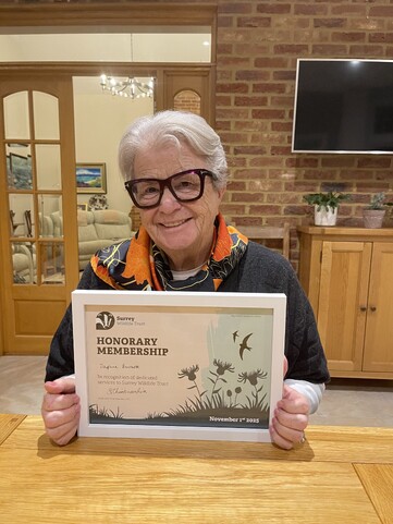 In 2025 she and her husband, George, gave the 14 acres of Rye Meadows to Surrey Wildlife Trust to continue her work supporting wildlife in Ashtead. She still owns other land in Ashtead and this too is now managed on her behalf by Surrey Wildlife Trust.